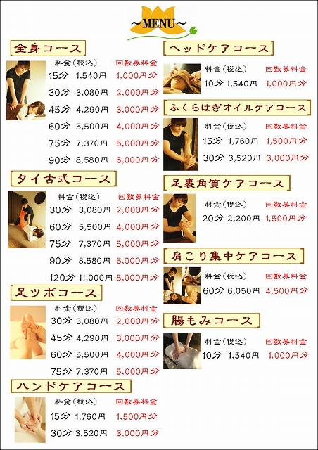 全身もみほぐしコース|施術の特徴と料金案内